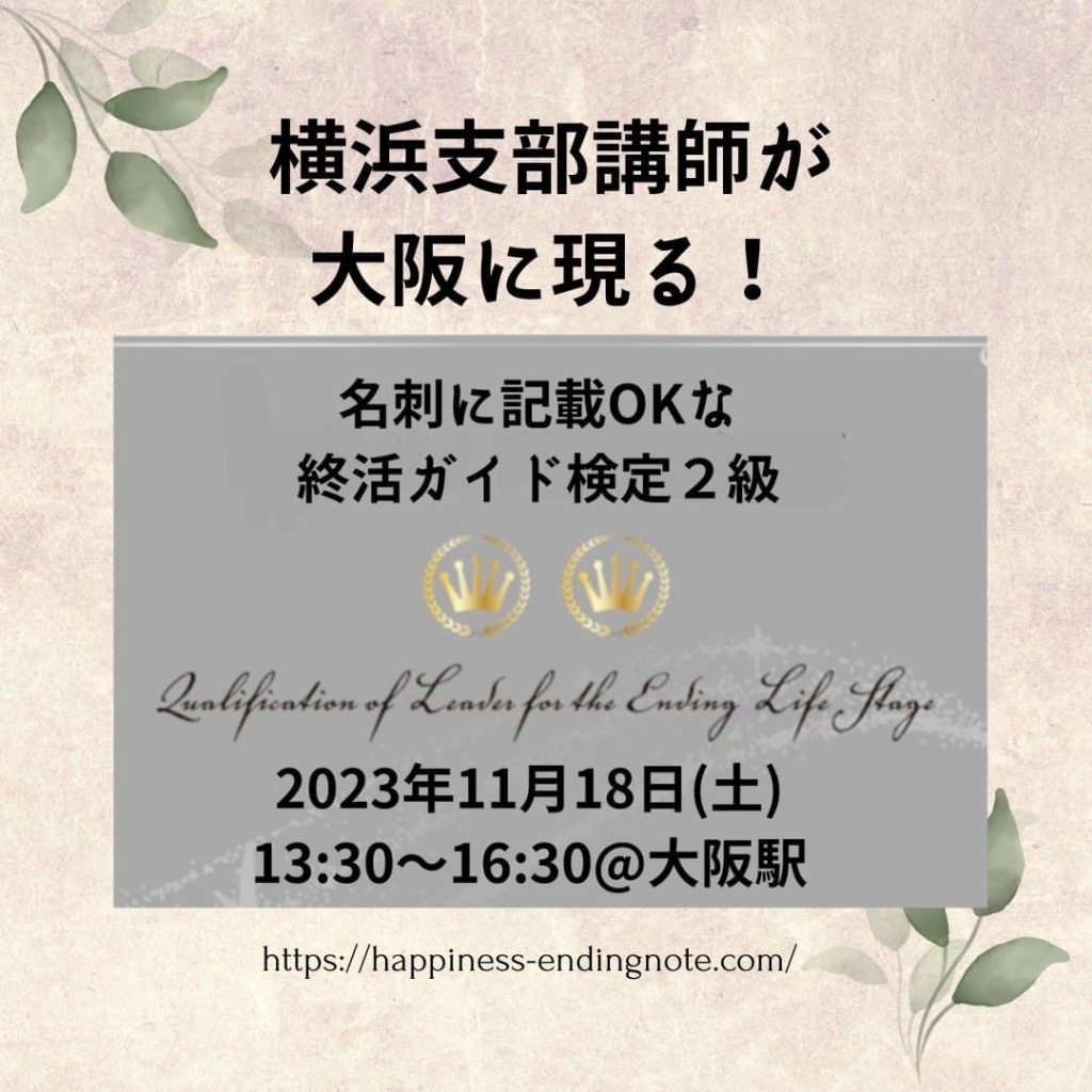 横浜支部講師が大阪に現る!2023年11月18日(土)13時半~16時半@大阪