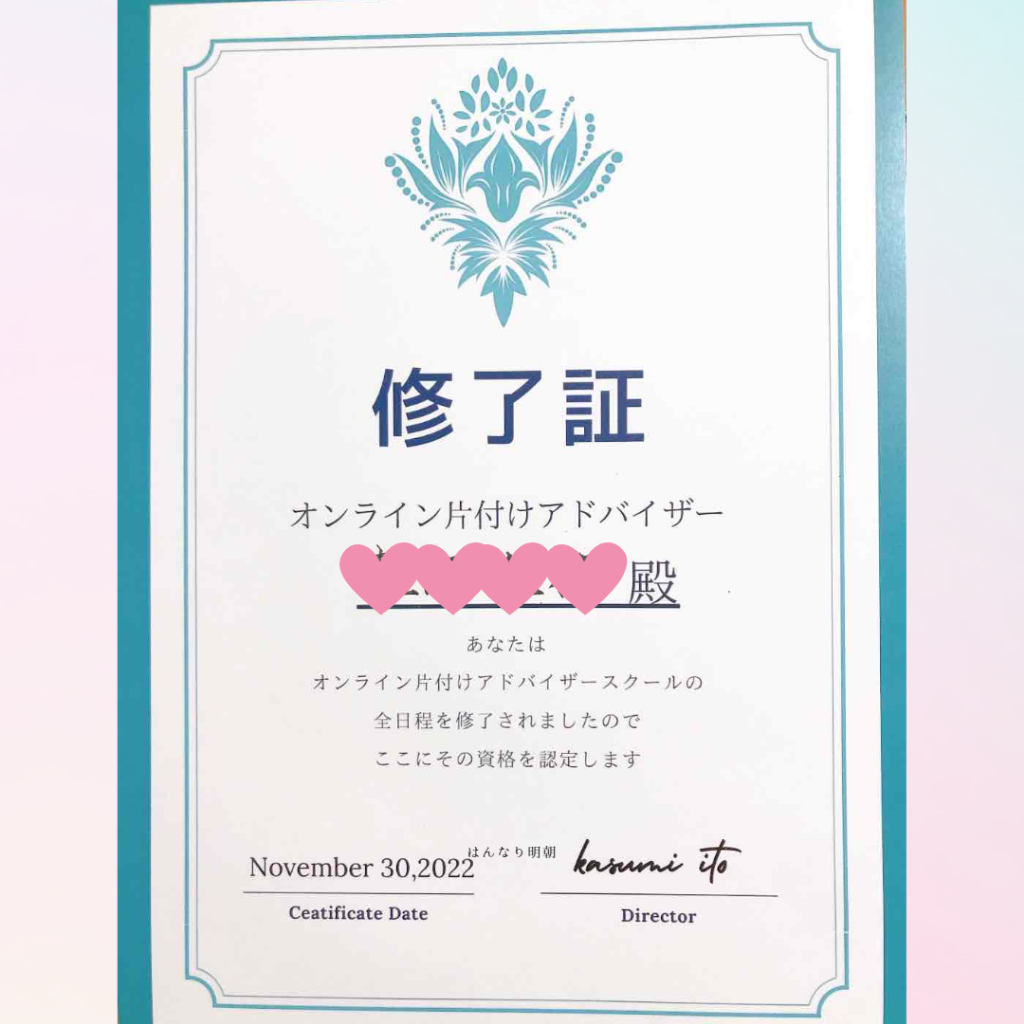 オンライン片付けアドバイザースクールを卒業し